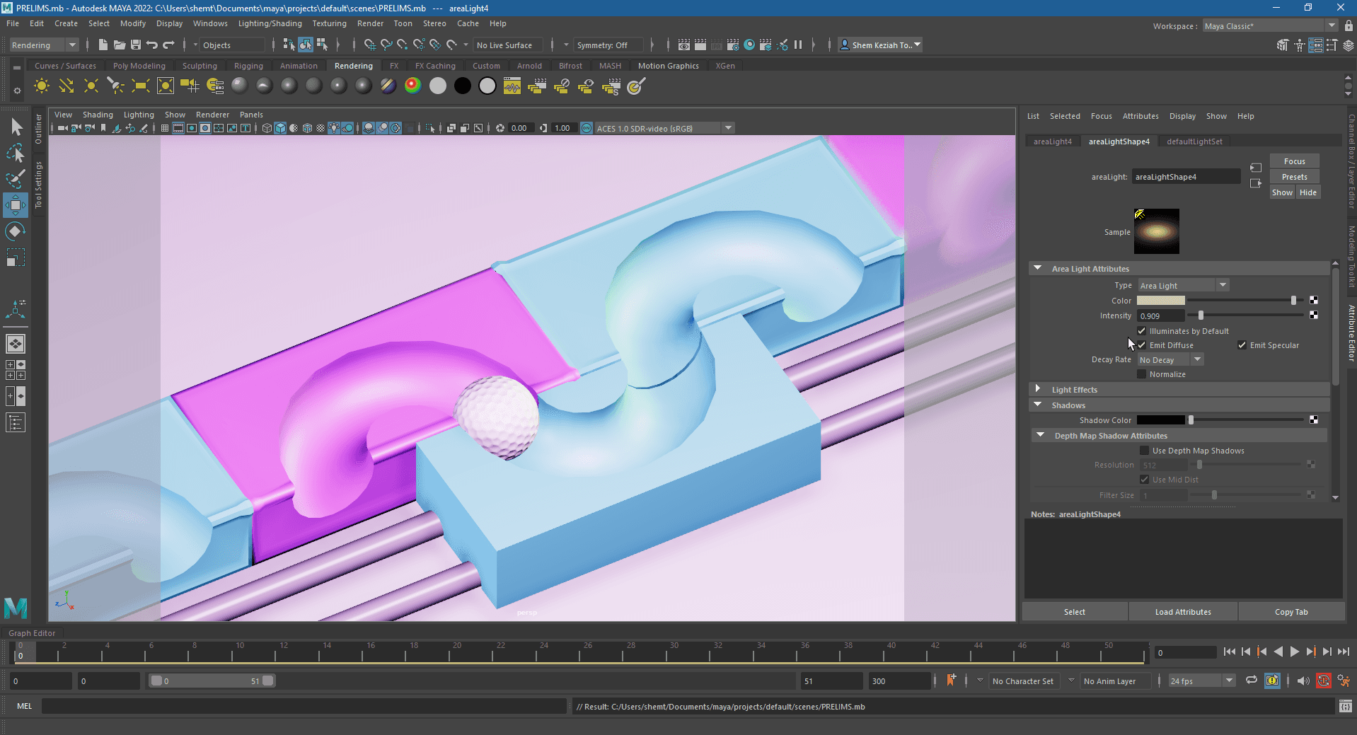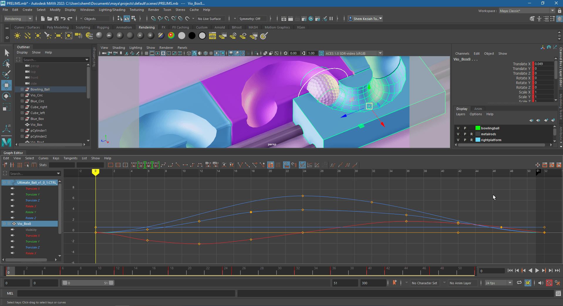 Used Maya 2022 for all aspects of the animation, also modeled and did lighting in Maya. Rendered using Arnold and made sure to clean up the grains after.